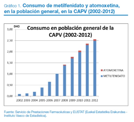 Nos hacemos hoy eco de la publicación de un Boletín Infac donde se pone de manifiesto un crecimiento exponencial del consumo de los medicamentos para el tratamiento del Trastorno por Déficit de Atención e Hiperactividad (TDAH) en el País Vasco, especialmente de metilfenidato, que puede apreciarse en el gráfico que se muestra a continuación. Este […]